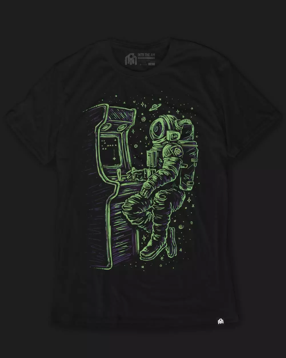 Drop a quarter in the slot and blast away at the asteroids with our original glow-in-the-dark Astro Arcade design featuring our astronaut on a premium ultra-soft men’s black t-shirt. This premium poly-cotton blend gives you the best of both worlds: a buttery soft blank that is breathable doesn’t shrink and lasts longer than 100% cotton tees.