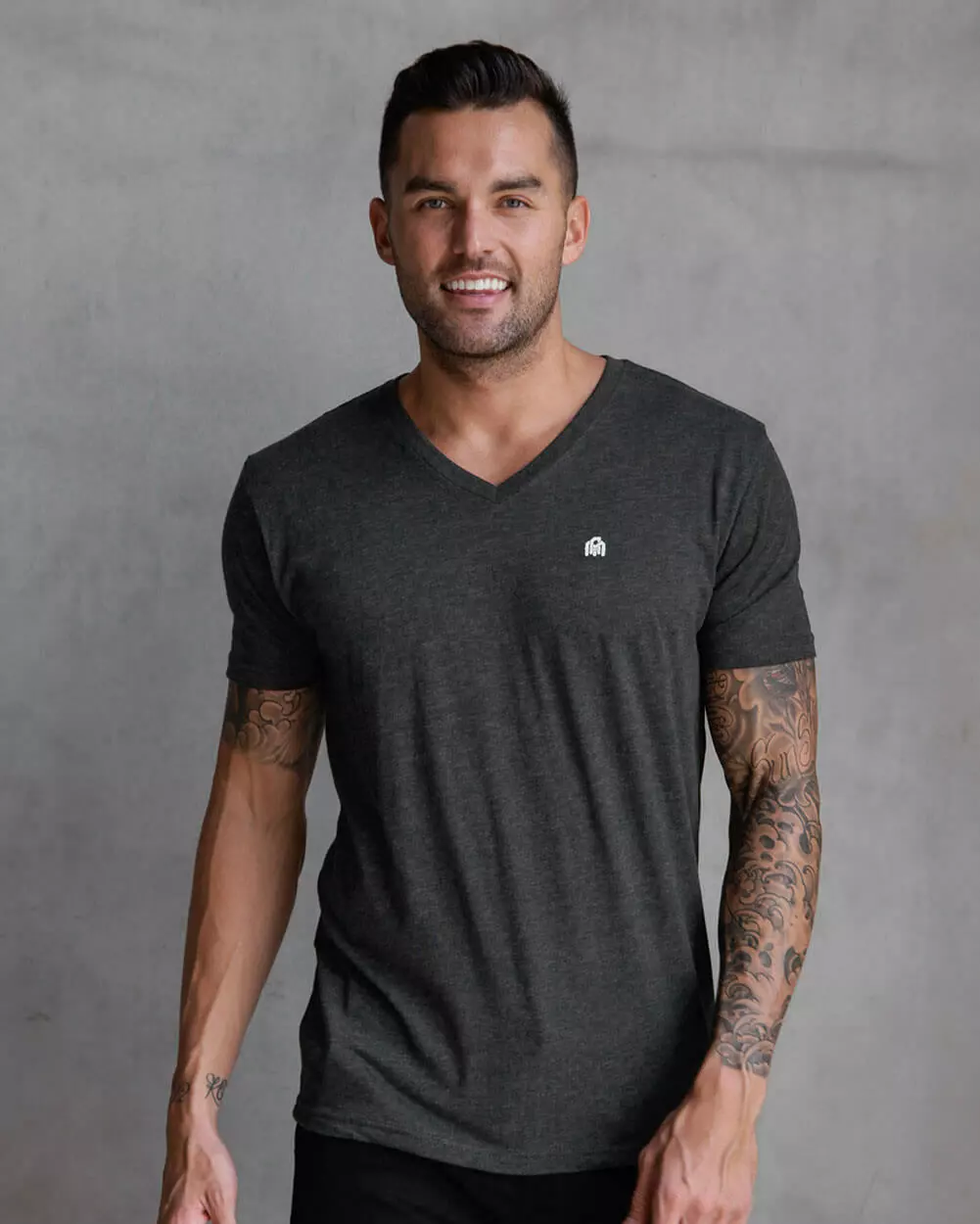 Add some variety to your daily hustle with our comfortable Basic V-Neck Tees. The premium poly-cotton blend comes in multiple colors and features our signature high-density printed logo. Wear solo or layered to keep you on the go.