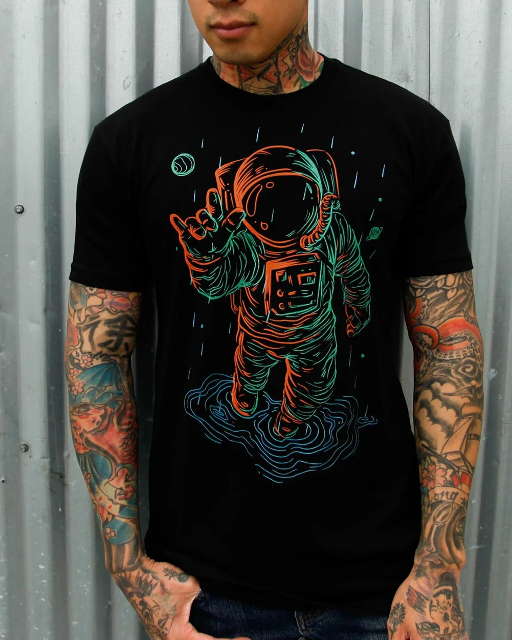 Blast off into space with this universal love, glow in the dark tee. It isn’t easy to be an astronaut but with this shirt, you can get close. Our friendly neighborhood spaceman also comes in peace, flashing the universal sign language symbol for love. It is tailored from ultra-soft fabric and printed with the highest quality inks.
