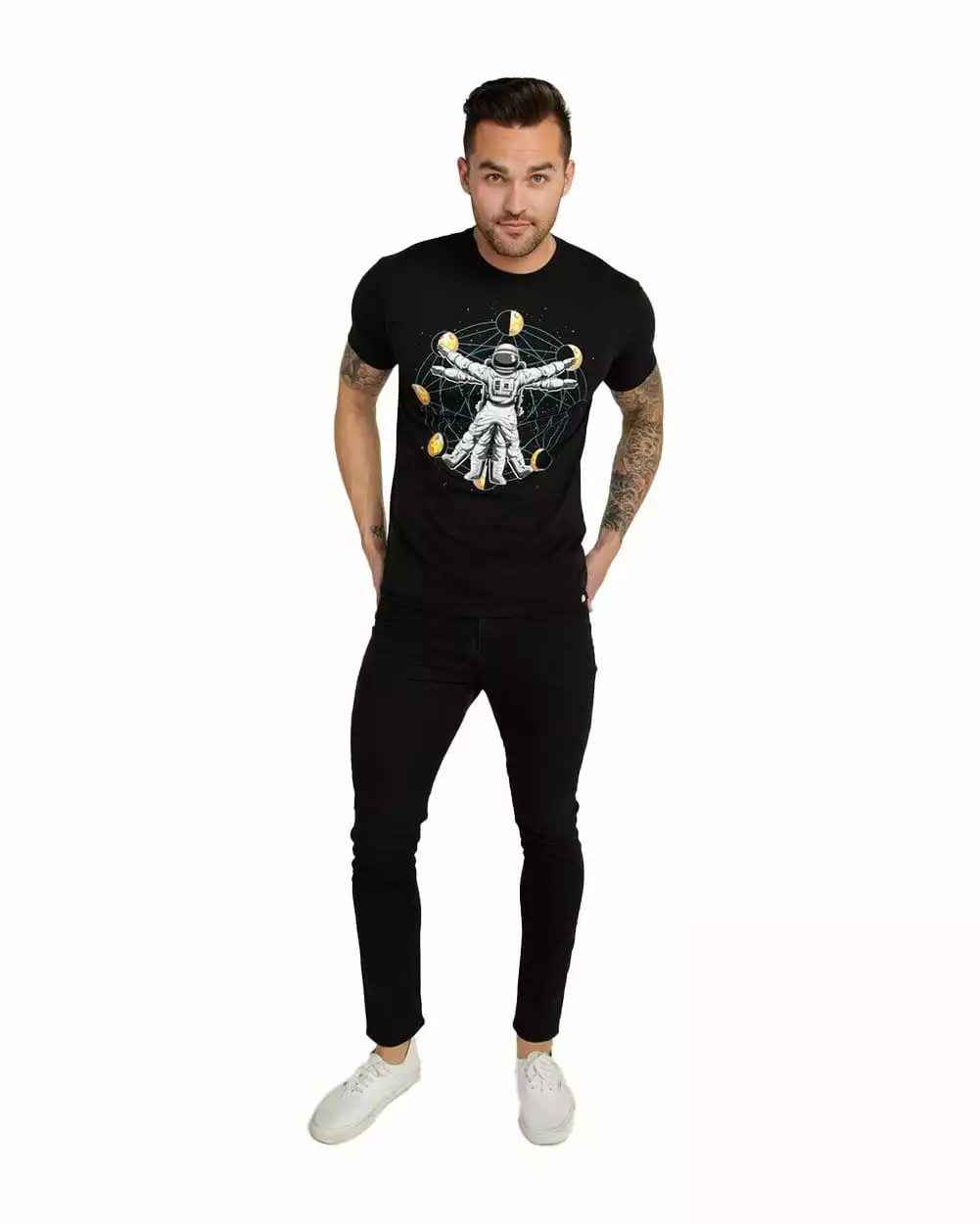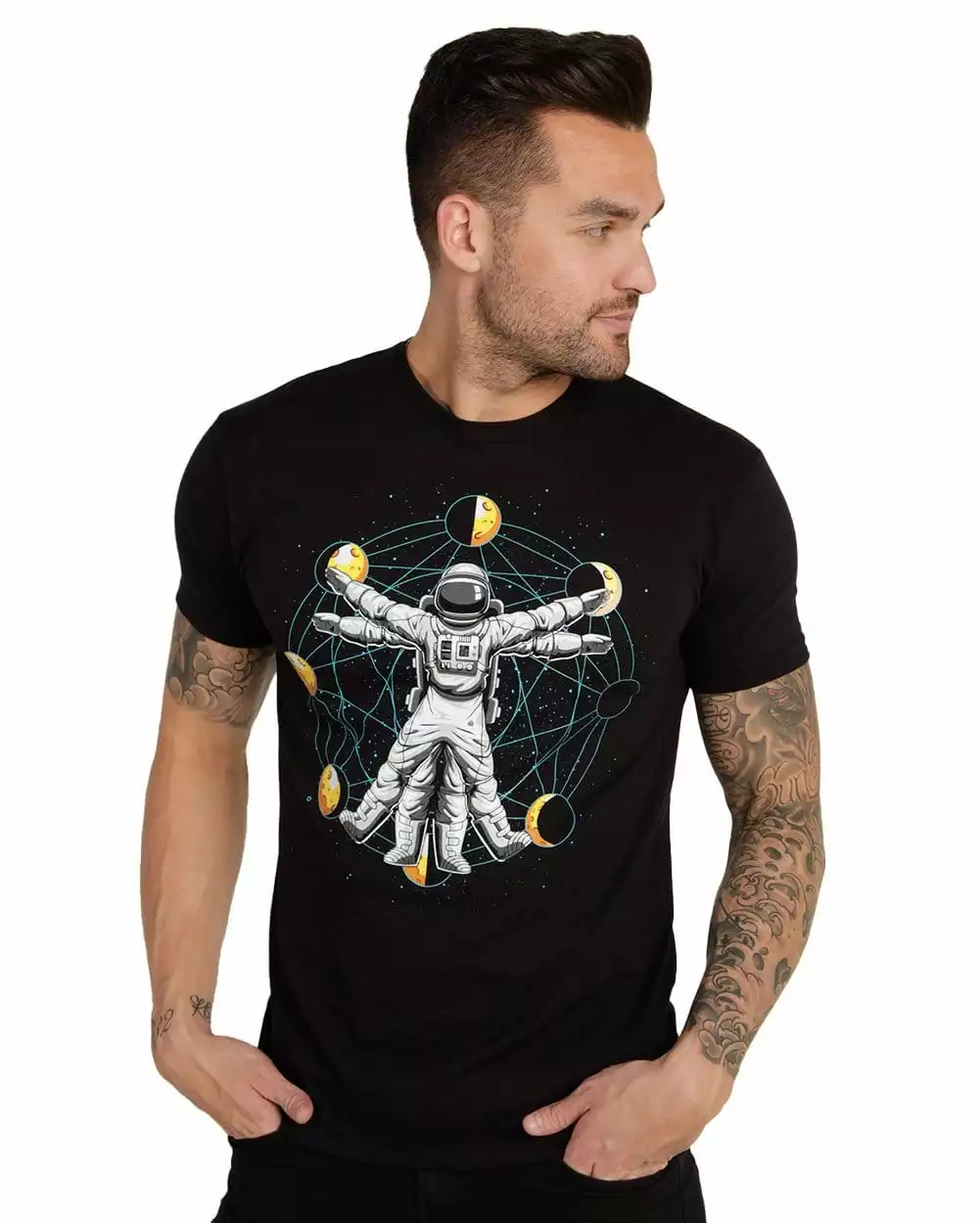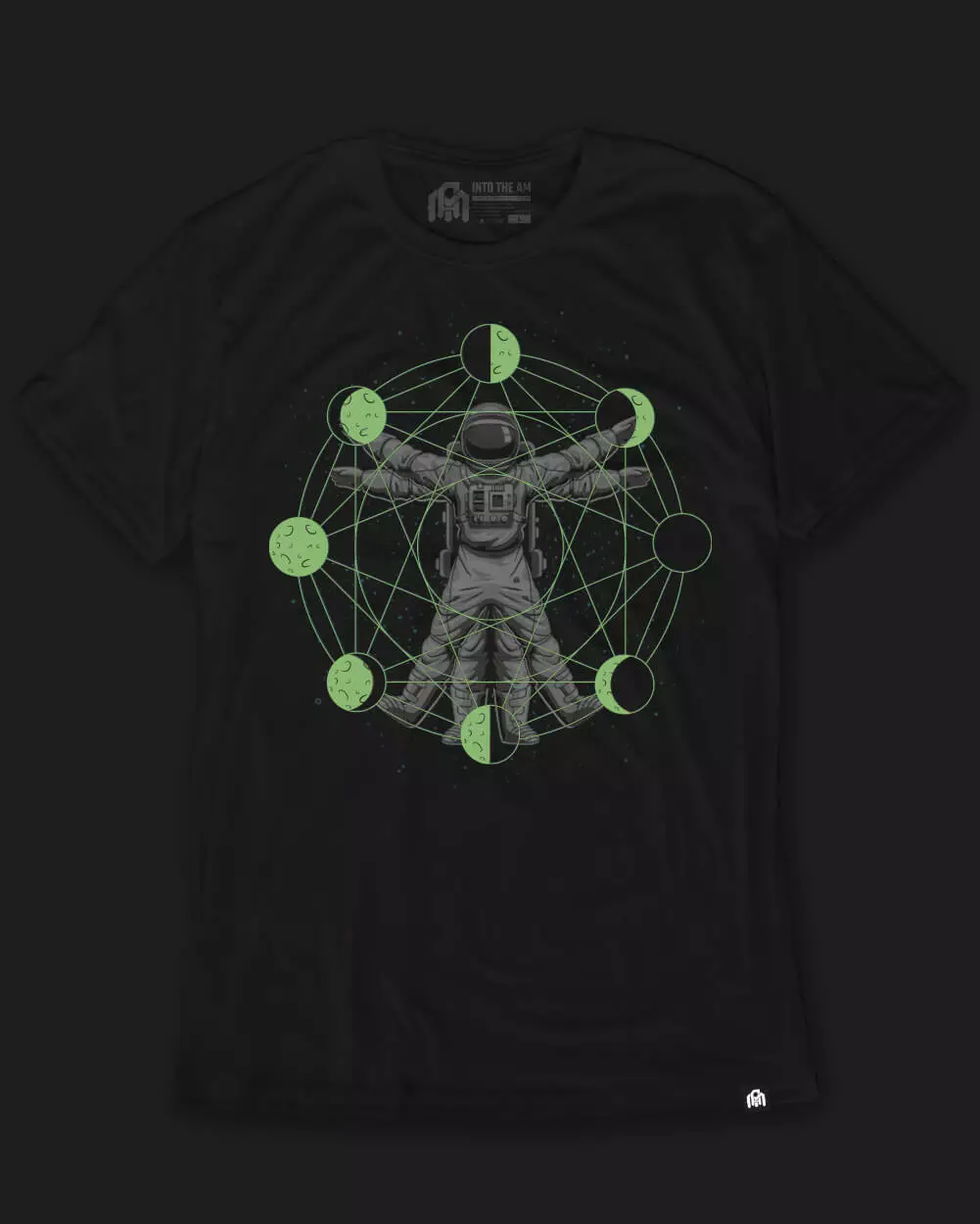 The Vitruvian Man floats in space with the phases of the moon to pinpointing the way to different dimension. He is a guide on a sacred journey few are willing to make. Will you?