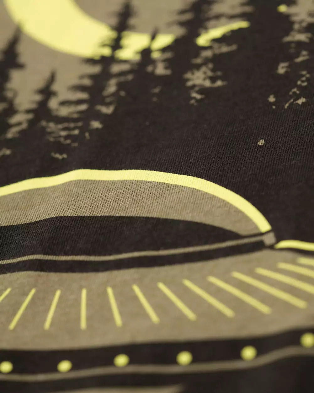 Travel to a moonlit forest and experience the feeling of a close encounter with the unknown in this premium graphic tee.