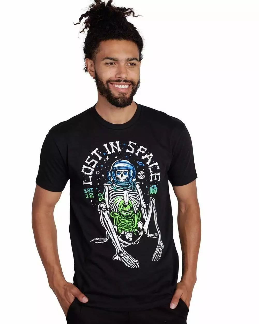 Make no bones about space travel – it’s hard. Astronauts may seem glamorous, but have you ever tasted freeze-dried ice cream or tried eating a Double Double animal style with fries from a tube? Never forget with our original Lost in Space design on a premium ultra-soft men’s black t-shirt.