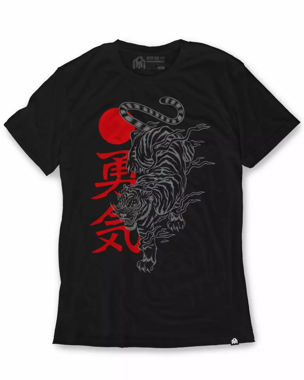 Roaming through the thicket of life’s distractions can make it difficult to lock in on your dreams. Achieving your goals requires perseverance, focus, and courage. So don our reflective Courage tee complete with the word in Japanese and channel your inner tiger.