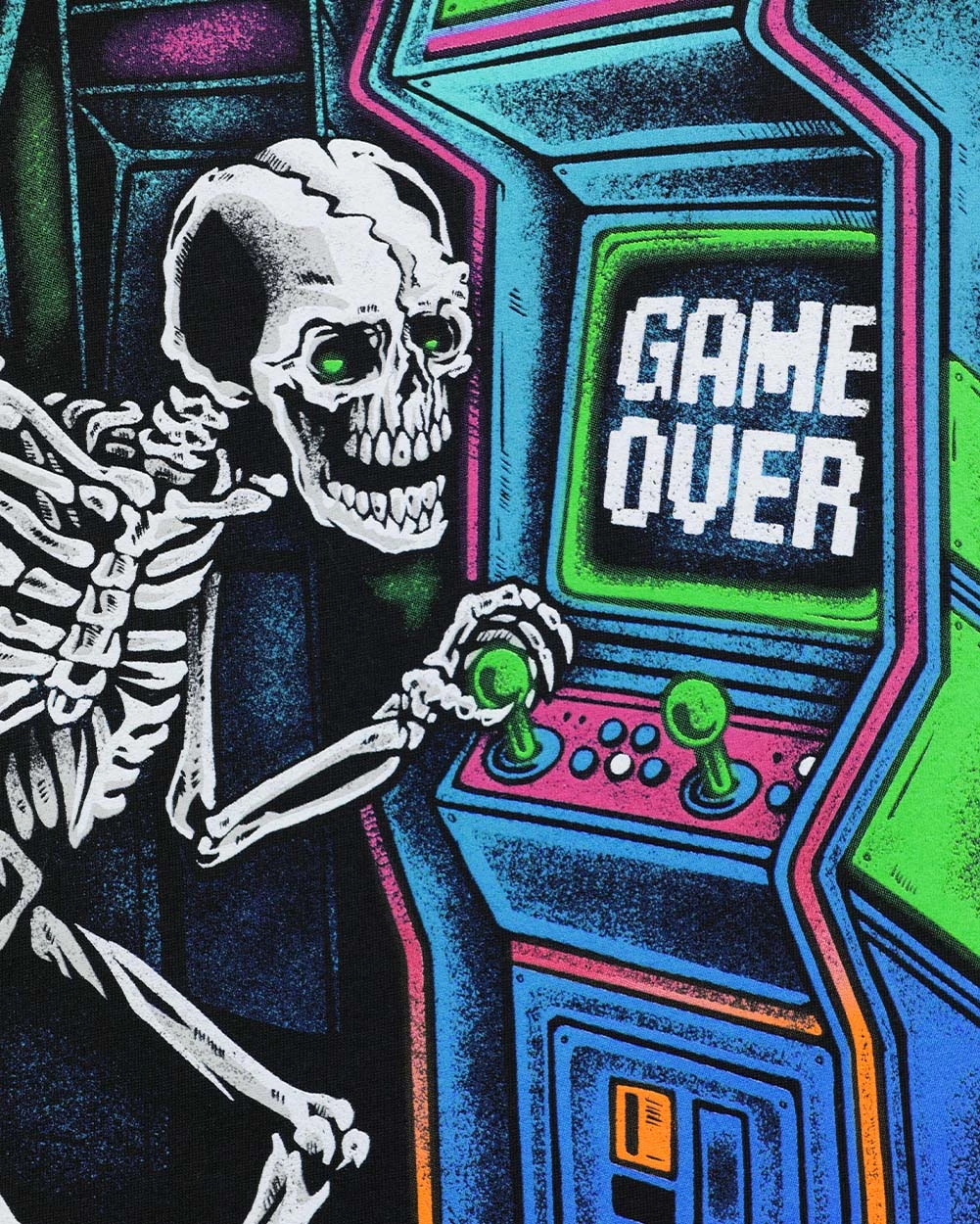 For some, the arcade is dangerous territory, a landscape of neon lights and pixels that can consume even the most passive gamer. One day, a newcomer makes his way to the local arcade, tokens teeming from his pockets ready to conquer the elusive new game everyone’s been talking about. Before he knows it, hours pass like minutes as he plummets into the game and is surmounted by his will to beat it. Hours become days and the unsuspecting rookie becomes consumed by his ambition as he withers away into oblivion. This poor individual disintegrates with his will, for no amount of tokens and vigor can save him from his fatal bender now.