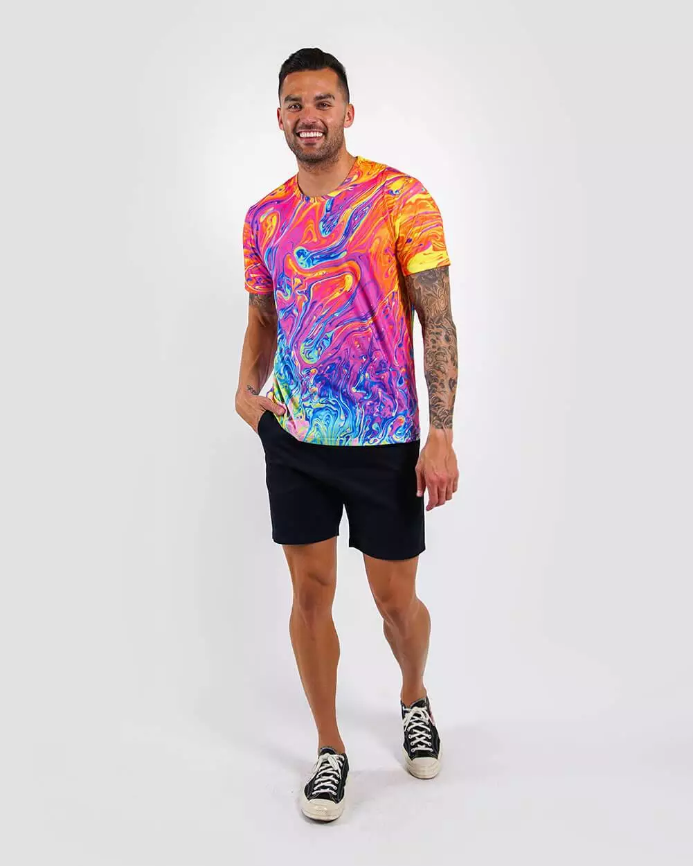 Get ready for Summer with this psychedelic blend of vibrant liquified metal flowing across this premium tee. Pink and blue hues dominate this design, enhanced by orange, yellow and green to turn you into a walking piece of art.