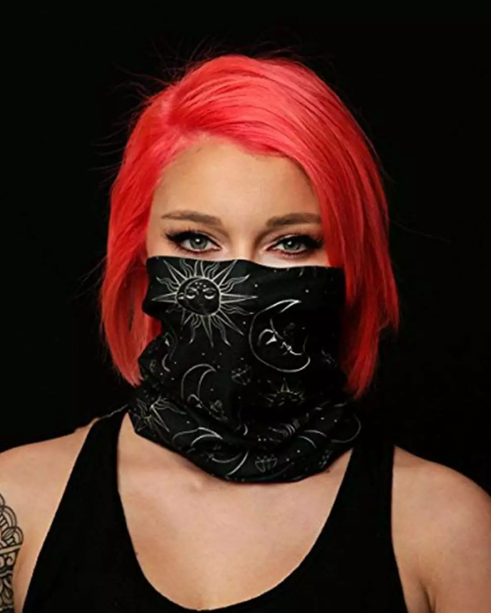 The Celestial Seamless Mask Bandana is a multi-functional face-covering that slides easily over your head to cover your neck, mouth, and nose. It can also be worn as a headband, wristband, hair tie, and more!
