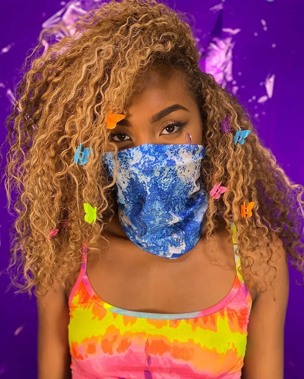 The Blue Skies Seamless Mask Bandana is a multi-functional face-covering that slides easily over your head to cover your neck, mouth, and nose. It can also be worn as a headband, wristband, hair tie, and more!